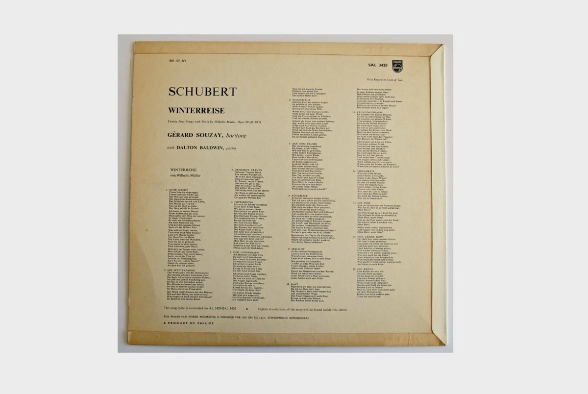 Wintereise eftir Schubert í flutningi Gérard Souzay, baritóns og Dalton Baldwin, píanóleikara.