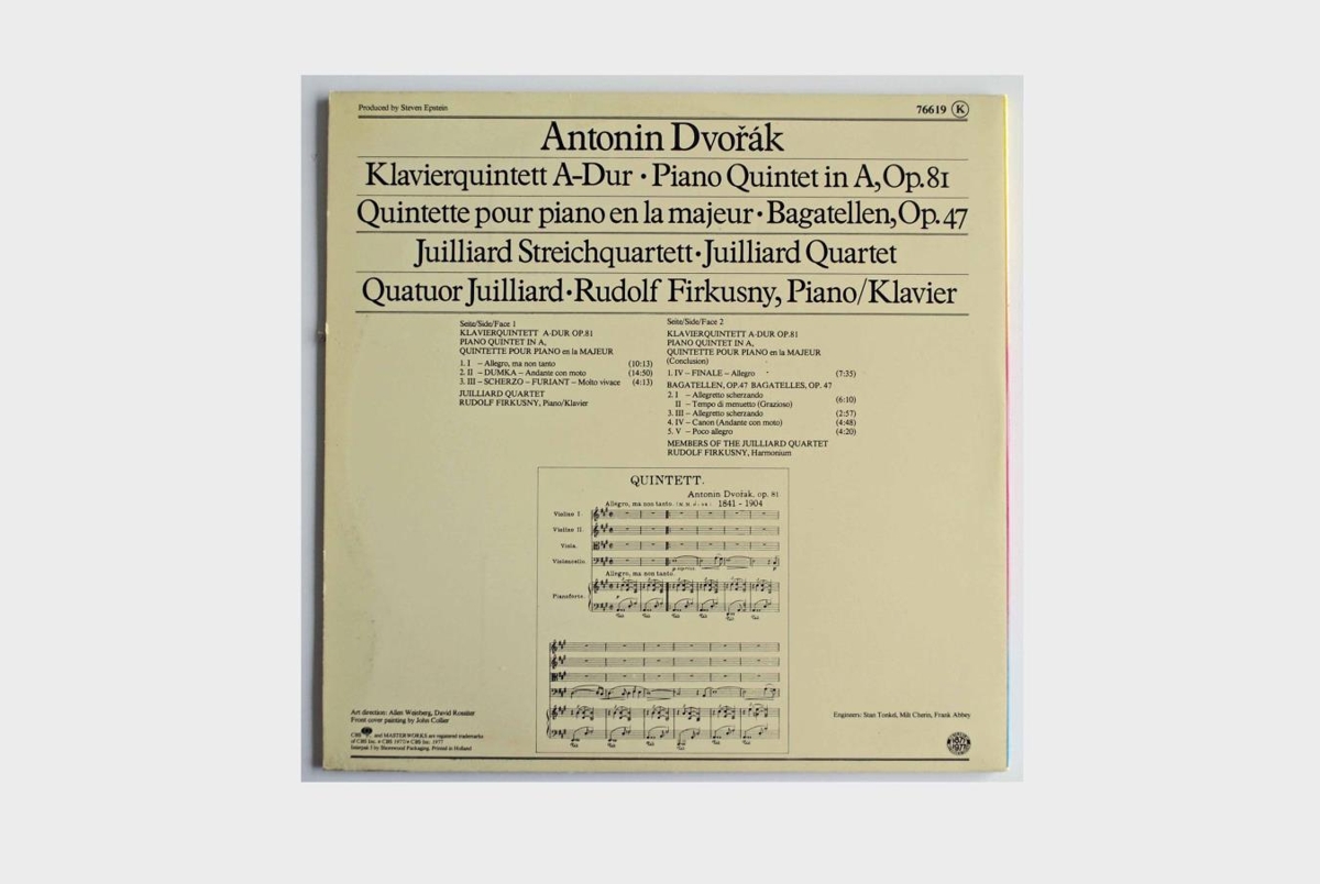 Juilliard strengjakvartettinn og Rudolf Firkusny, píanóleikari leika tvö verk, Píanókvintett í A-dúr Op. 81 og Bagatellen Op. 47, eftir Antonin Dvorák.
