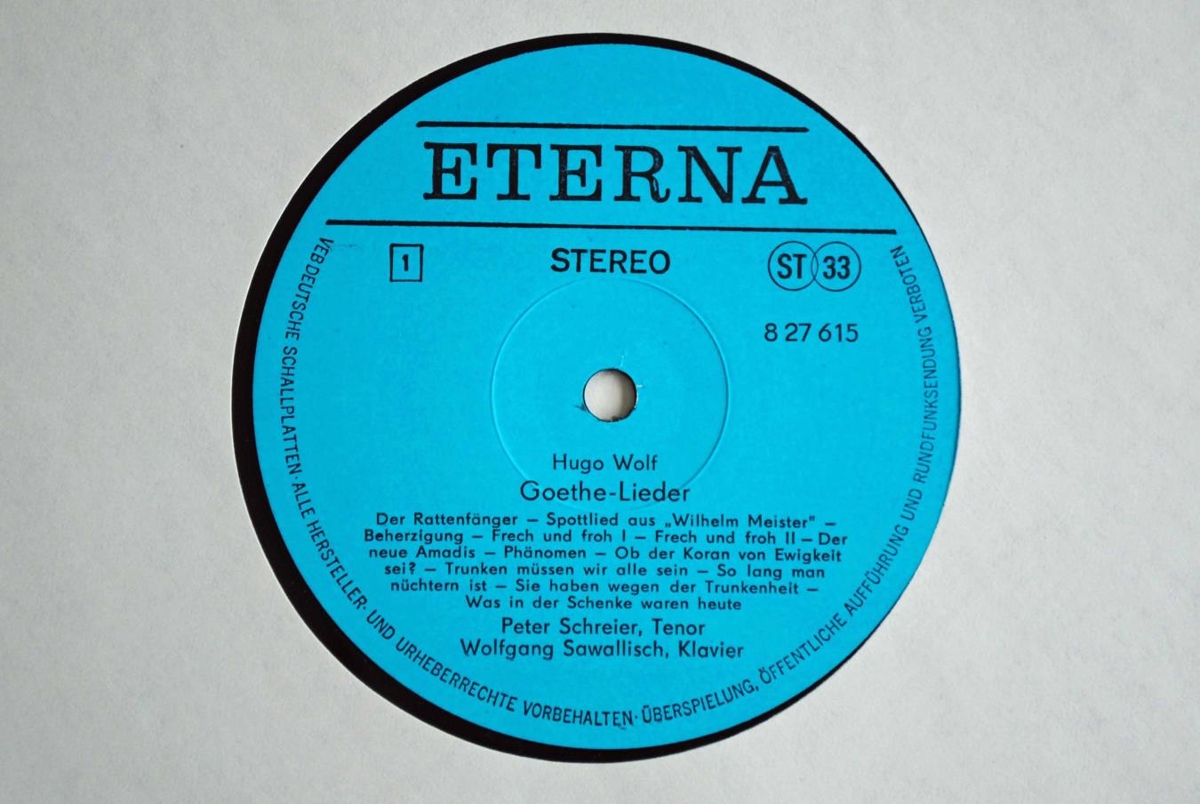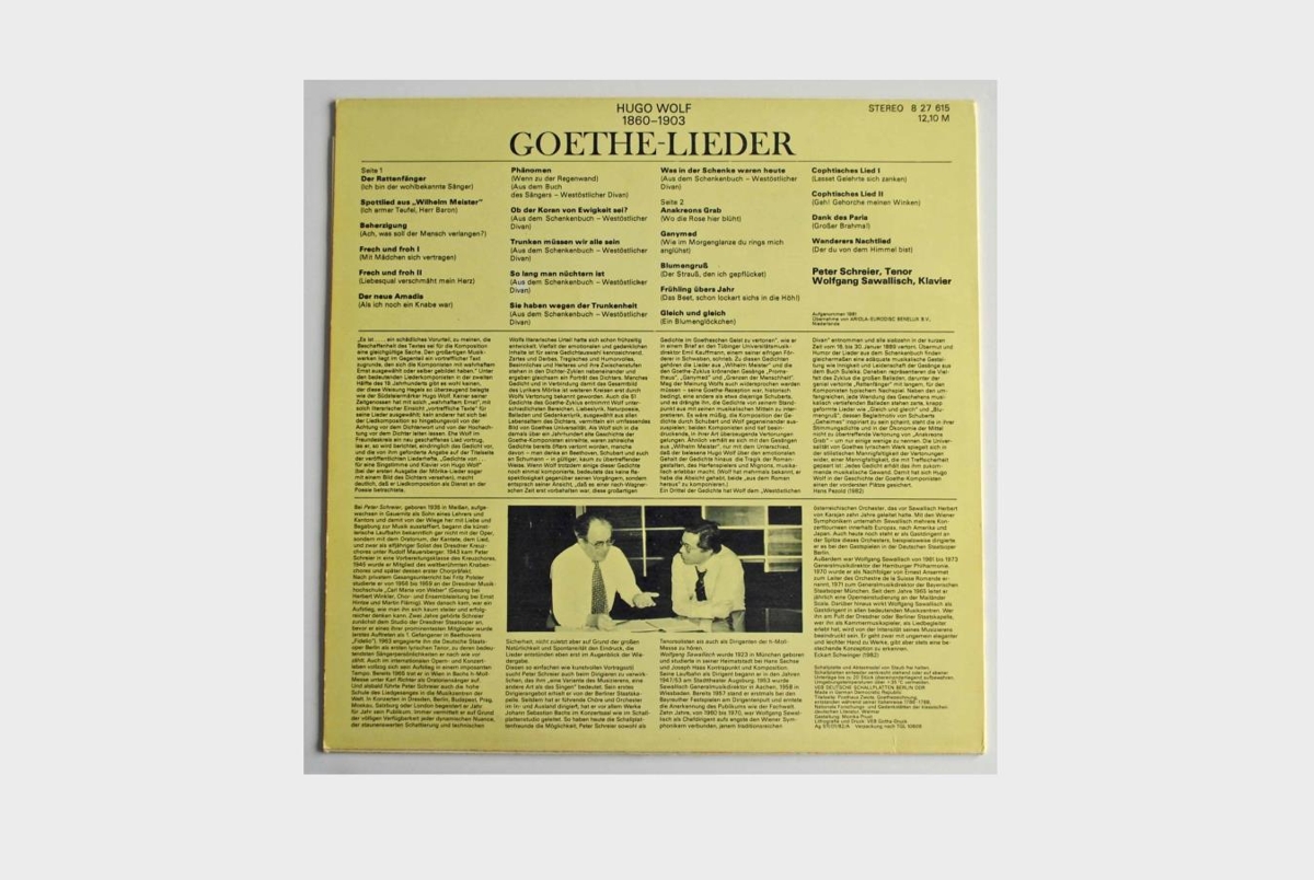 Lög Hugo Wolf við texta Goethe í flutningi Peter Schreier, tenórs og Wolfgang Sawallisch, píanóleikara.