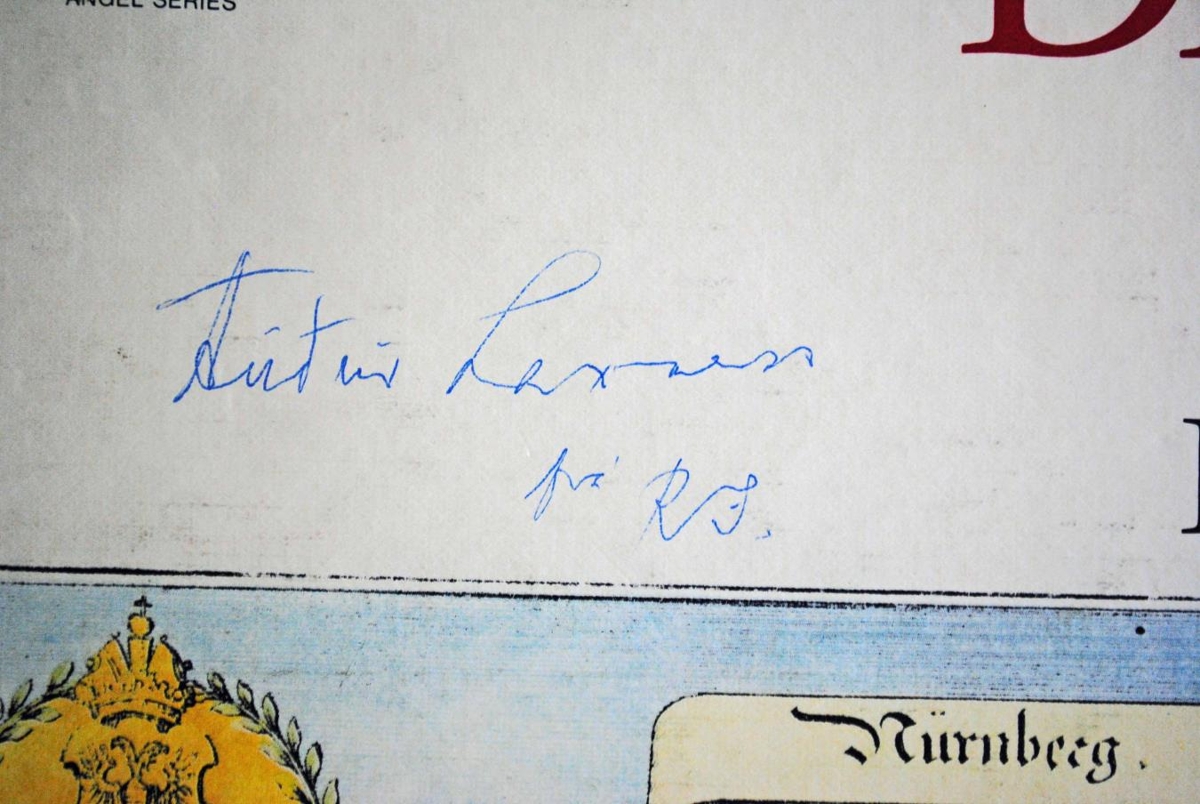 Framan á kassan er ritað með penna: "Auður Laxness frá RJ". Líklega eru plöturnar gjöf frá Ragnari í Smára.
