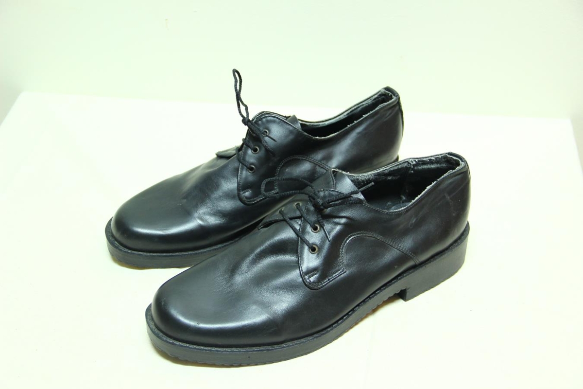 Skórnir eru úr svörtu leðri og reimaðir. Sólinn er úr svörtu gerviefni. Texti: Act. Stærð: 44.