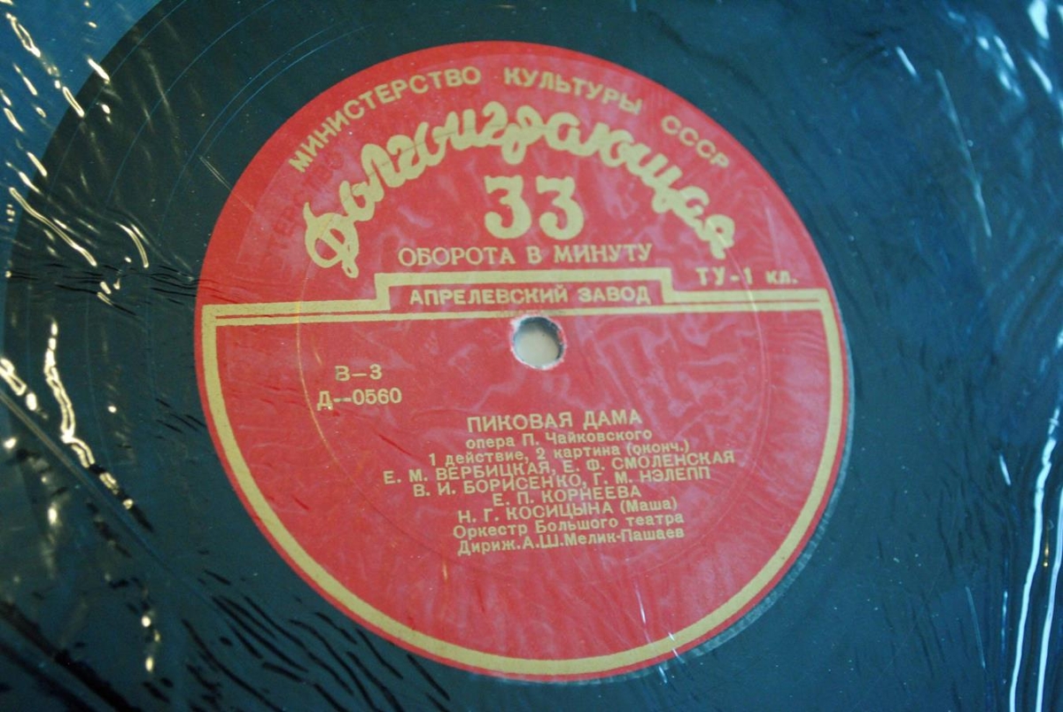Spaðadrottningin erfir Tchaikovsky í flutningi Bolshoi leikhússins. Óperan er á fjórum 12 tommu hljómplötum.