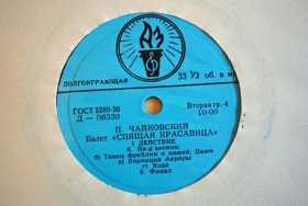 Þyrnirós eftir Tchaikovsky í flutningi Bolshoi Theater Orchestra undir stjórn B. Haikin. Ballettinn er á þremur 12 tommu hljómplötum.
