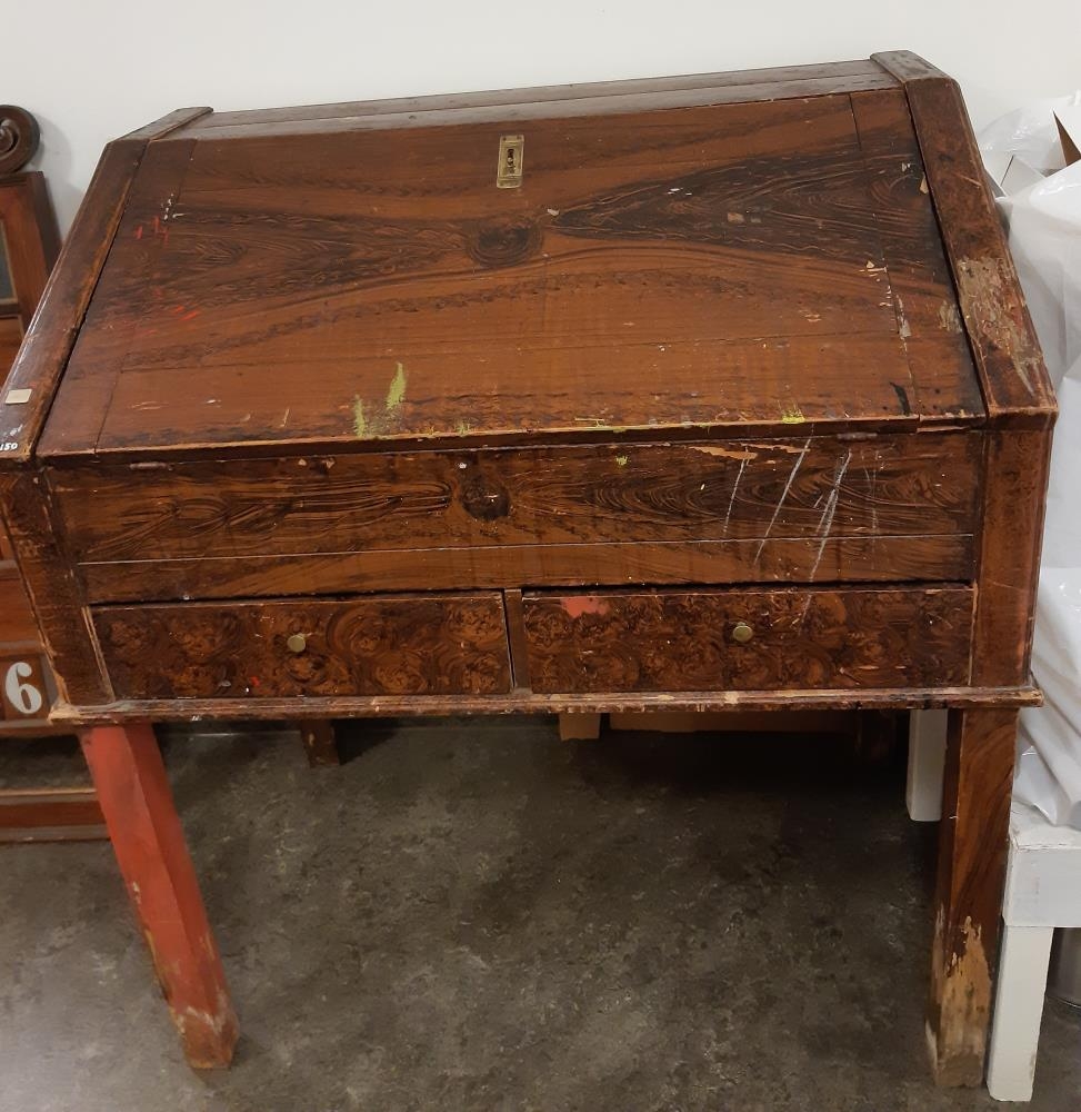 Skatthol með tveimur skúffum og stóru hólfi. Hólfið er rúmgóð hirsla. Í því eru fimm skúffur. Skattholið stendur á fjórum 51 cm löngum fótum. Á því er koparlæsing og koparhnappar á öllum skúffum. Skattholið er oðrað, þá er olíu blandað saman við duft og með því er munstrið málað (viðarmunstur). Síðan er lakkað yfir. Málningin er illa farin.