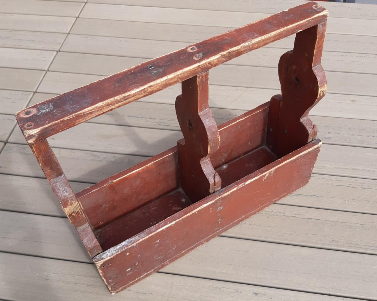 Rauðmálaður snældustóll fyrir tvær snældur. Teina og snældur vantar.