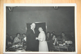 Náttkjóll í upprunalegum umbúðum. Kjóllinn var jólagjöf og fylgir gjafamiðinn með. Á honum stendur: Til mömmu frá pabba. Eigandi kjólsins: Edith Sigurðsson. Meðfylgjandi er mynd af henni og eiginmanni hennar, Steingrími Sigurðssyni. Stærð 44.