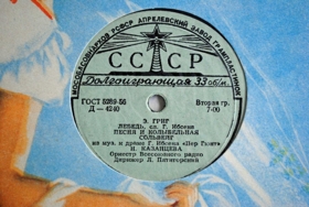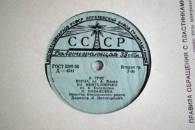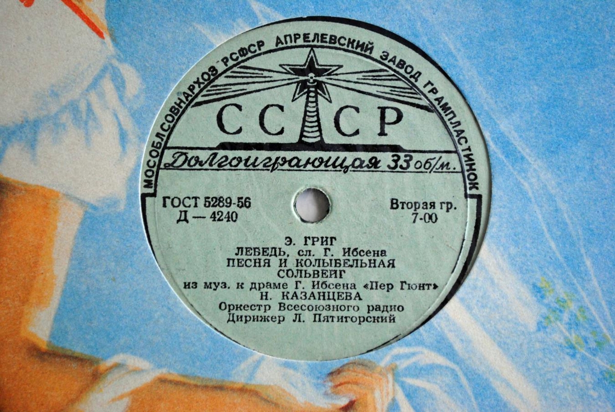 Útvarpshljómsveit Sovétríkjanna flytur verk eftir Grieg meðal annars Peer Gynt. Allar upplýsingar á plötunni eru á rússnesku. Platan er í bláa hljómplötukassanum.