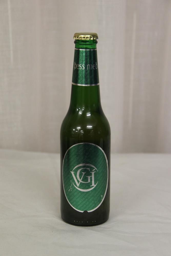 Græn glerflaska með gylltum tappa með Víking-merkinu. Sérmerktur bjór: Vgí - www.vgis.is - Alkóhól 5,6 %. Stærð: 330 ml.