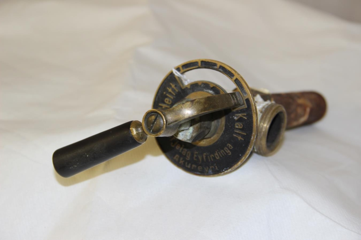 Ofnakrani fyrir miðstöðvarofna. Hann er merktur Kaupfélagi Eyfirðinga Akureyri (KEA).