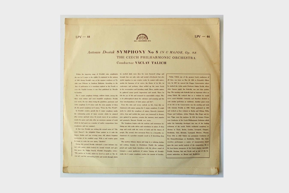 Sinfónía Nr. 8 í G dúr eftir Antonín Dvorak í flutningi Tékknesku fílharmóníunnar undir stjórn Václav Talich.
