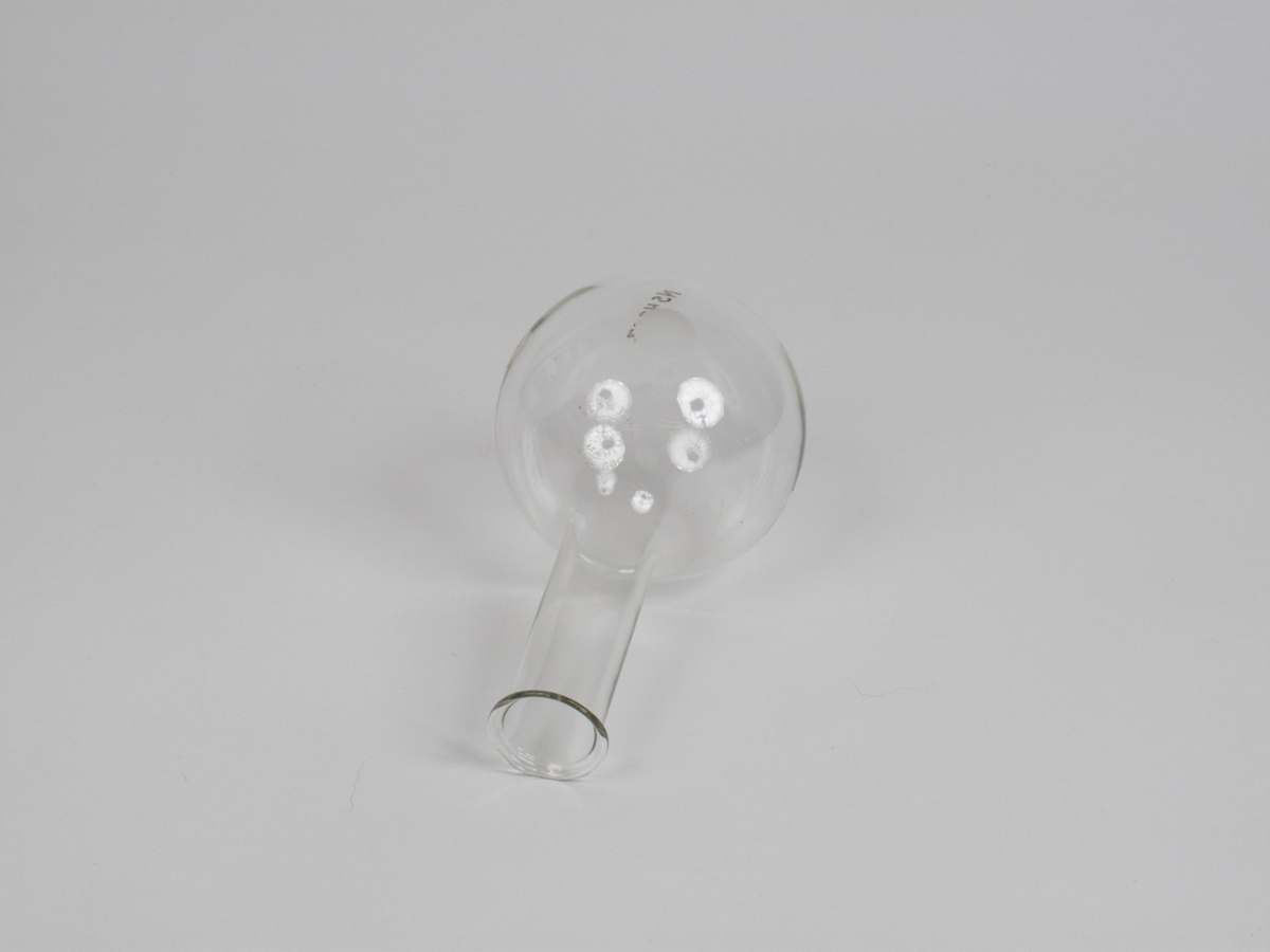 Þorsteinn Þorsteinsson efnafræðingur á Tilraunast. H.Í. í meinafræði að Keldum skrifar um gripinn: Suðukolba með eimsvala. Eimsvalinn er tengdur við kolbuna með korktappa. Þetta var gert á þennan hátt fyrir 1960 en þá fór að koma á markaðinn slípaðir flöskuhálsar og slípuð glervara féll í. Þessi tæki notaði Halldór Grímsson á árunum 1948-1964..
