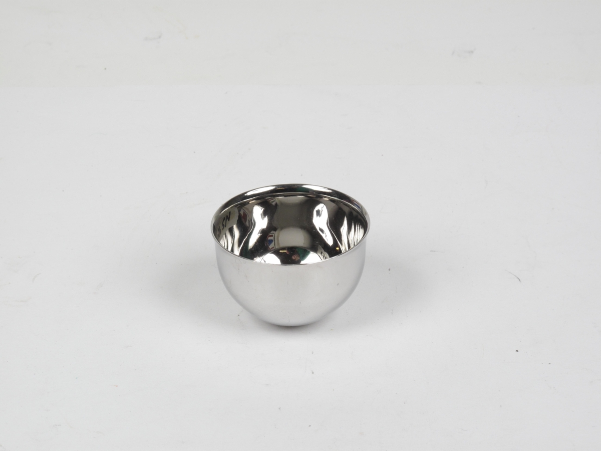 Mjaðmaliðsbolli sem Halldór Baldursson læknir færði safninu. Bollinn er hluti af safni mjaðmaliða sem Halldór hefur tínt saman fyrir Nesstofusafn. Þetta safn inniheldur alla mjaðamliði sem notaðir hafa verið á Íslandi. Halldór ætlar að taka saman upplýsingar um liðina, m.a. hvar og hvenær hver tegund var notuð, og færa þær safninu. Með mjaðmaliðsbollanum fylgdi ljósrit úr vörulista frá framleiðanda bollans. Þar stendur m.a.: S.Mo LIGHTWEIGHT SMITH-PETERSEN HIP CUPS. Smith-Petersen Cups manufactured from S.Mo Stainless Steel are the result og several years of research and development by Zimmer Orthopeadic Ltd. Many surgeons prefer to work with S.Mo for all internal fixation application. These S.Mo Hip Cups can be used for cases involving the hip joints, such as malum coxae senilis, congenital hips dislocations, rheumatoid arthritis, mal-union or non-union of the hip.. Bollinn er með hringlaga opi, 5,5 cm í þvermál, og dýpt hans er 4 cm.