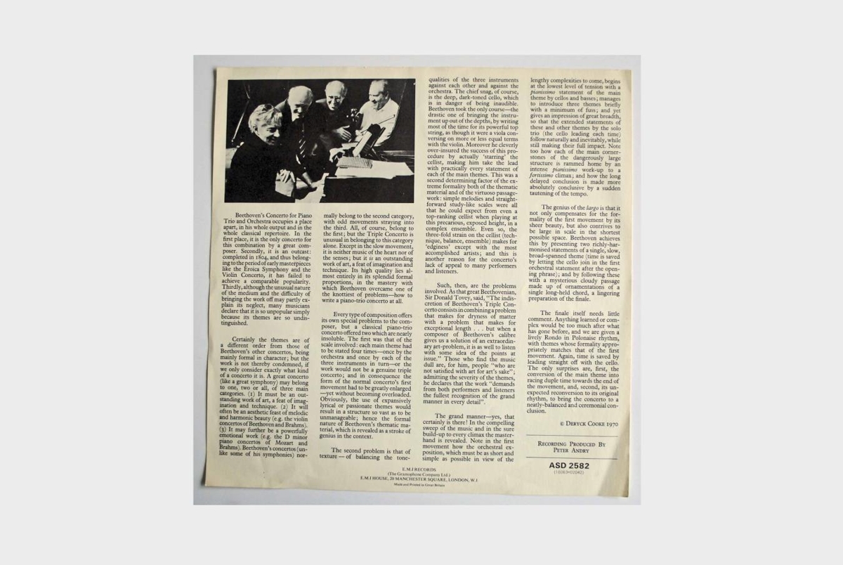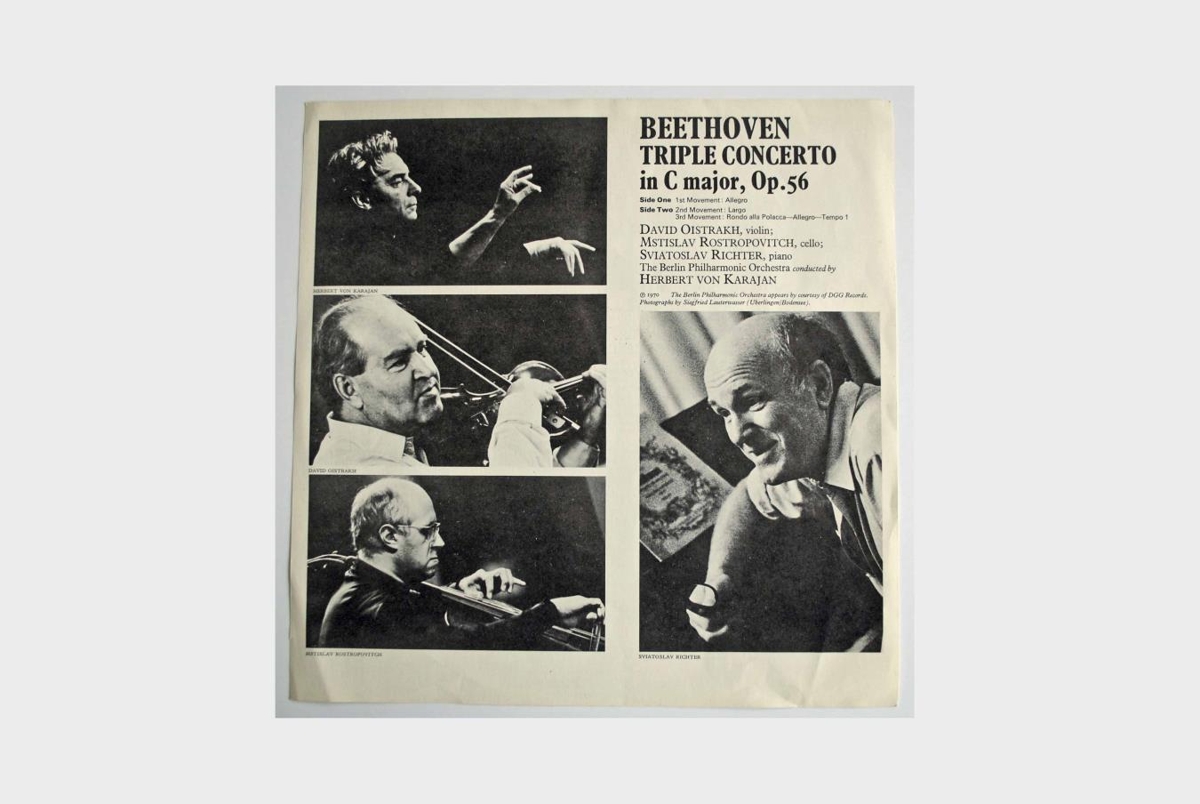 Bæklingur sem flygt hefur hljómplötu þar sem David Oistrakh, Mstislav Rostropovitch og Sviatoslav Richter ásamt Berlínarfílharmóníunni undir stjórn Herberts von Karajans flytja Triple Concerto eftir Beethoven. Platan sjálf er ekki ennþá á Gljúfrasteini.