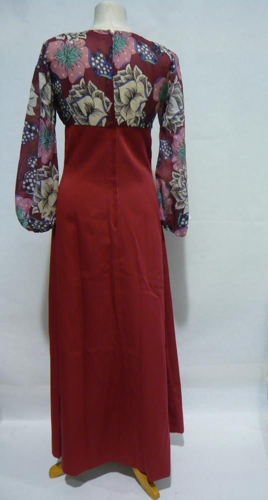 Sparikjóll, saumaður eftir tísku ársins 1973. Hann er skósíður og renndur að aftann.