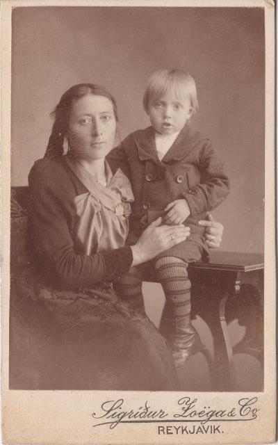 Guðrún Eggertsdóttir (1881-1983) og sonur hennar Eggert Björnsson (1915-2004) í Arney á Breiðafirði.