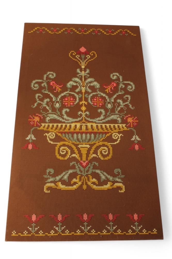 Útsaumsmynd á blindramma. Glitsaumur. Ullarjavi, ullargarn.