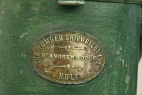 Skipsluktin er græn með olíulampa inn í luktinni. Á henni eru tvær plötur með áletrun: Meteorik 51659 Patent no. 546575 og The Humber Shipwright co Ltd. - S. Andrews dock - Hull. Stærð lampans er: 17x17x34 cm.