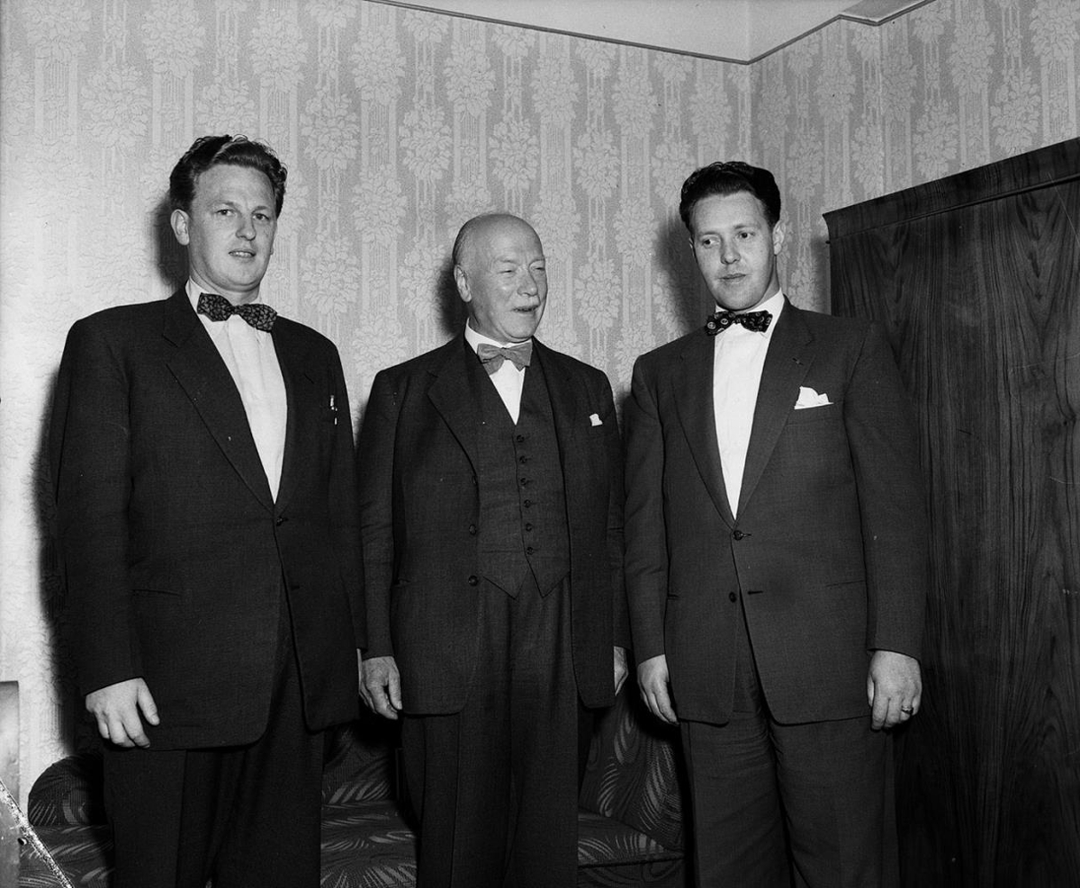 Þrír jakkafataklæddir karlar í stofu. Benedikt Gröndal, óþekktur og Erlendur Einarsson.