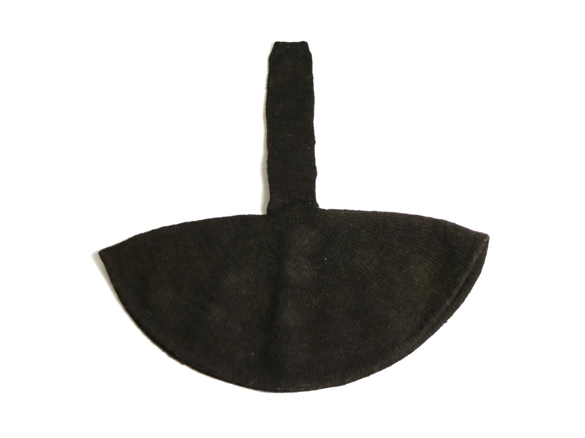 Skotthúfa, prjónuð úr svörtu, fíngerðu ullargarni. Húfan er grunn og að líkindum frá síðari hluta 19. aldar. Á hana vantar bæði skúfinn og skúfhólk. Gæti hafa fylgt telpuupphlutsborðum og svuntu nr. Þjms. 2016-43-2 og 2016-43-4.
