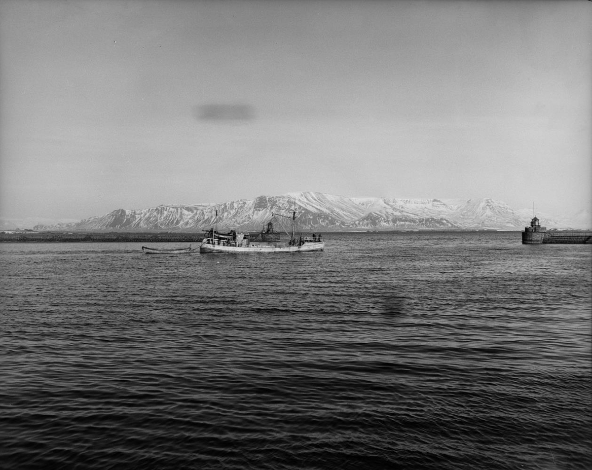 Reykjavíkurhöfn. Vélbátur á útsiglingu.