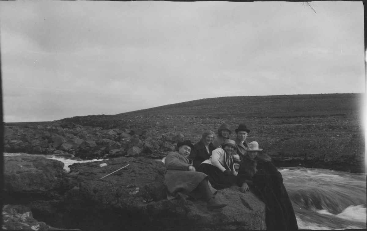 Fólk situr saman við á, tveir karlmenn og fjórar konur.