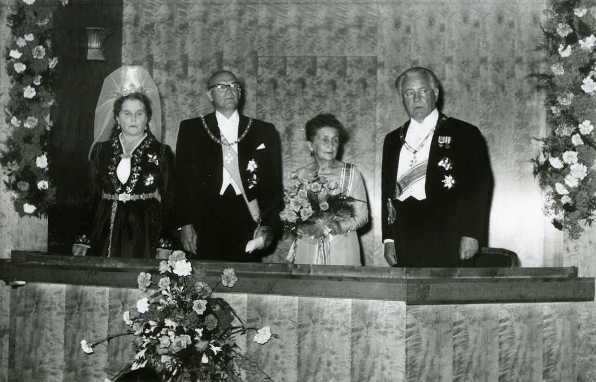 Úr forsetatíð Ásgeirs Ásgeirssonar. Heimsókn Kekkonens Finnlandsforseta. Forsetarnir ásamt mökum sínum í Þjóðleikhúsinu. F.v.: Dóra Þórhallsdóttir, Uhro Kekkonen, Sylvi Kekkonen og Ásgeir Ásgeirsson.