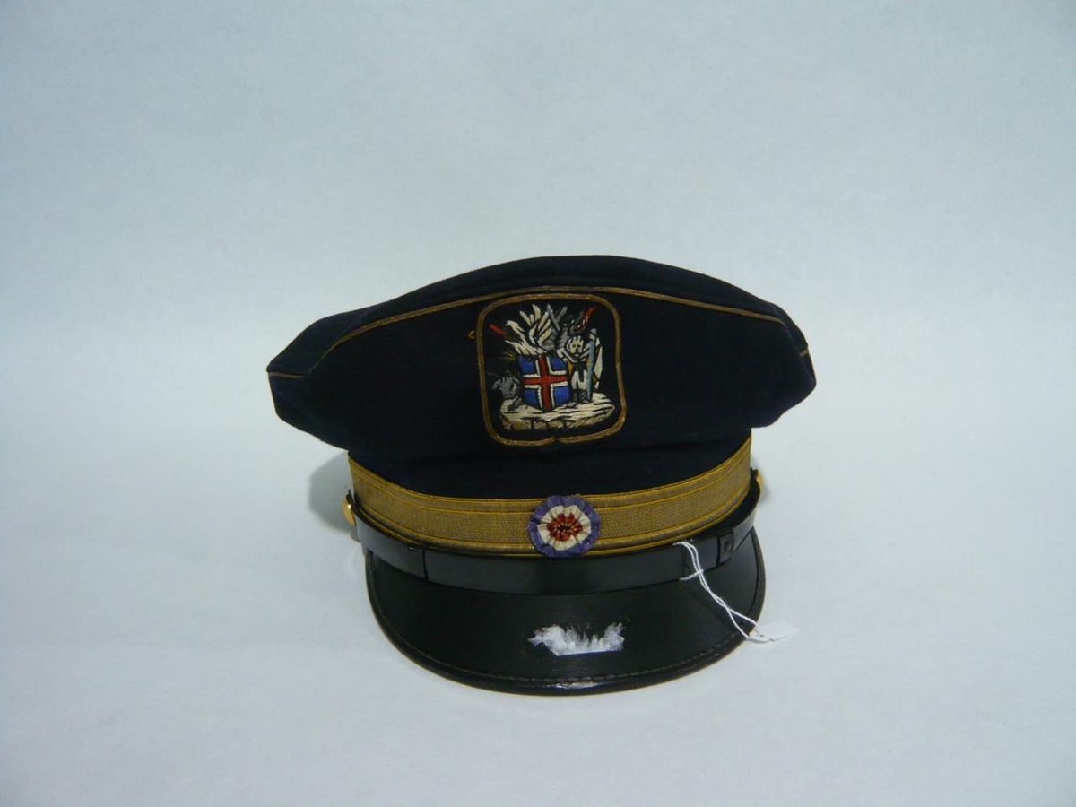 Húfu þessa átti Björn Sveinbjörnsson en hann var settur bæjarfógeti í Hafnarfirði 1956-66. Húfan er dökkblá með gylltri rönd neðst, svörtu deri og framan á henni er blóm í fánalitunum en ofan við það er íslenska er skjaldarmerkið saumað. Á húfunni er hökuól sem fest er með gylltum hnöppum með skjaldarmerkinu.
