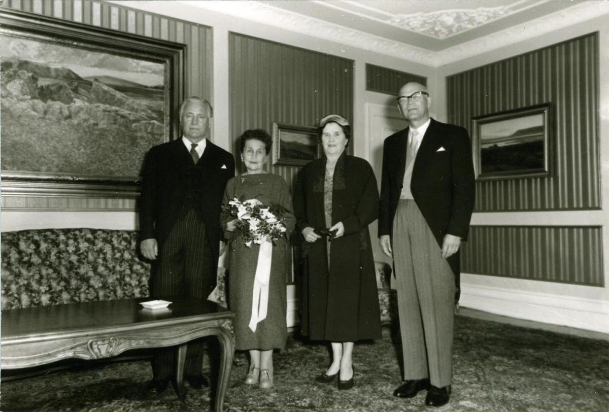 Úr forsetatíð Ásgeirs Ásgeirssonar. F.v. Ásgeir ásgeirsson forseti, Sylvi Kekkonen forsetafrú, Dóra Þórhallsdóttir forsetafrú og Uhro Kekkonen forseti Finnlands.
