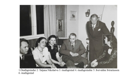 Frá vinstri: ónafngreindur maður, Tatjana Nikolaéva píanóleikari, ónafngreind kona og ónafngreindur maður (mögulega sendiherrahjón frá Sovétríkjunum), Þorvaldur Þórarinsson og ónafngreind kona.