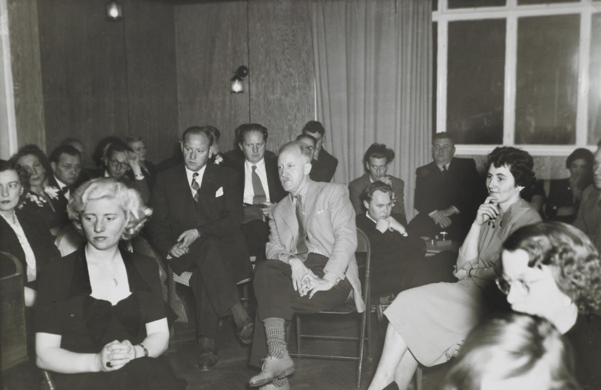 Gestir hlýða á tónleika Tatjönu Nikolaévu á Gljúfrasteini árið 1952.