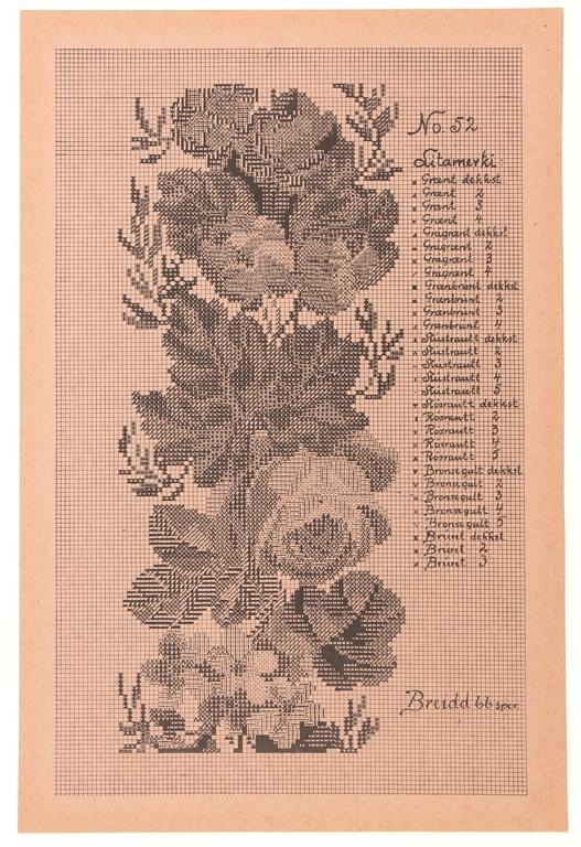 Útsaumsmunstur no. 52 er á tveimur blöðum.