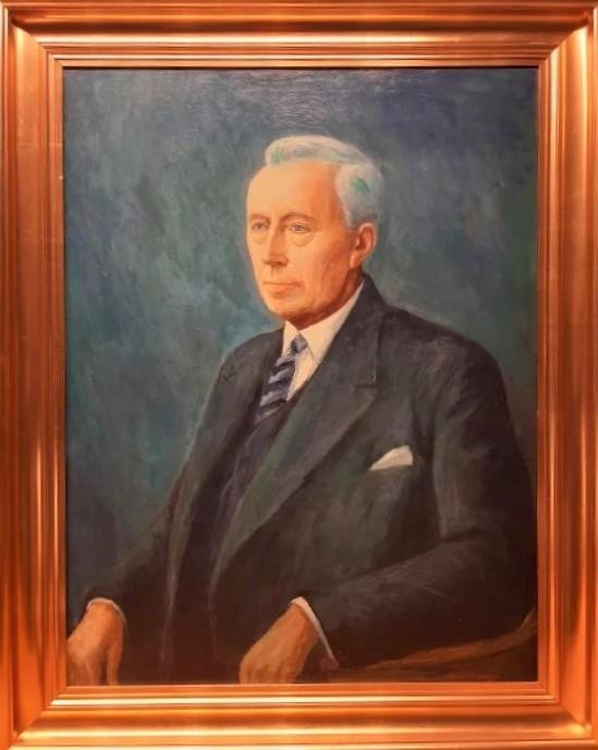 Innrammað olíumálverk Örlygs Sigurðssonar af Jóni Ormssyni rafvirkjameistara (f. 1886), föður Jóns Aðalsteins Jónssonar, orðabókaritstjóra (f.1920)