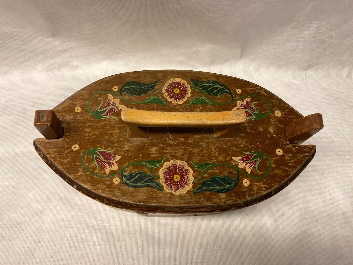 Rósamáluð tína, að venju sporöskjulaga. Hald (yngra) er á loki. Á aðra hlið er letrað MG 1862. Lakkáferð er utan á tínunni. Þetta virðist útlendur gripur. Mattildur var vinnukona hjá Árna Gíslasyni sýslumanni á Kirkjubæjarklaustri árin 1860-1872. Ég (Þ.Tómasson) geri því skóna að Árni hafi pantað tínuna frá Danmörku. Hún er forkunnar vel varðveitt miðað við aldur. Gripir frá langömmu gefenda; Matthildi Guðmundsdóttur ljósmóður á Dyrhólum í Mýrdal (f. 1847 d. 1937). Ragnheiður Þorsteinsdóttir amma Sólveigar var dóttir Matthildar.