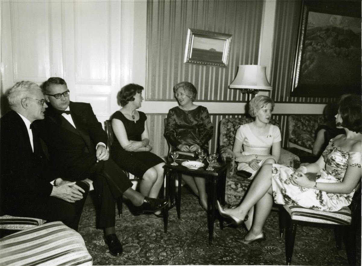 Samkvæmi í Ráðherrabústaðnum. Páll Agnar Pálsson annar f. vinstri.