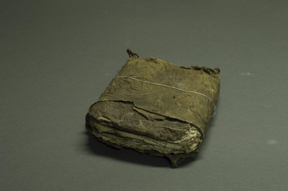 Var hirt úr Suður-Hvammi, lá þar í rusli. Kemur úr bókasafni Markúsar Loftssonar bónda og fræðimanns í Hjörleifshöfða. Rotið og einskis nýtt bindi úr Árbókum Espólíns. Sýnir hvernig fyrri menn gátu gengið frá bókum sínum. Ber að varðveita vel, óraskað. Mikils verður safngripur.