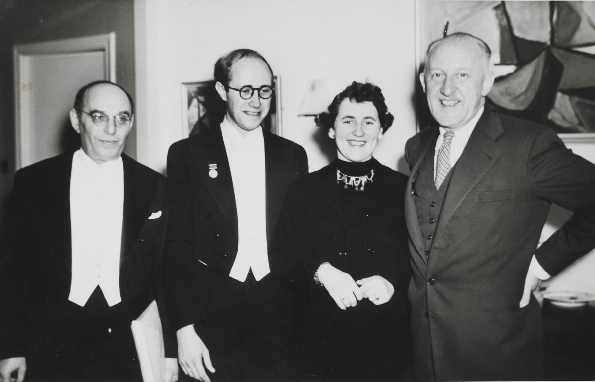 Myndin er tekin í september 1954 þegar fjórða sovéska sendinefndin var stödd á Íslandi. Á henni má sjá Makarov undirleikara, Rostropovich sellóleikara, Auði og Halldór Laxness. Ekki er víst hvar myndin er tekin.