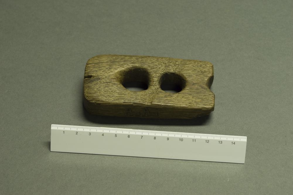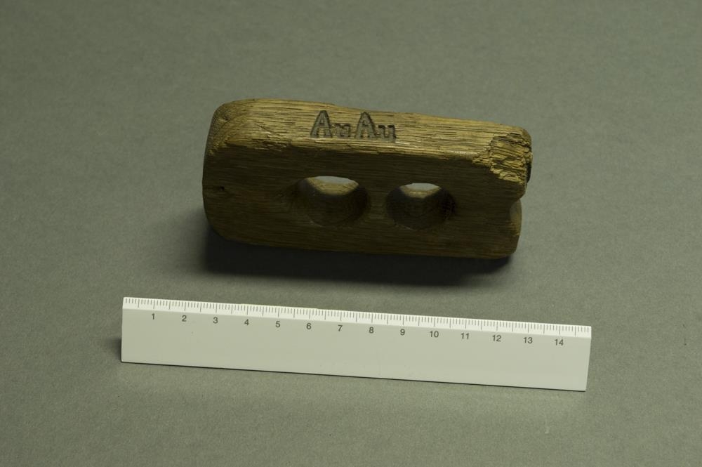 Tvígata högld úr eik. Brennimerkt á langhlið með AuAu sem er Auðunn Auðunsson í Efri-Hól. Hann var afi gefanda.
