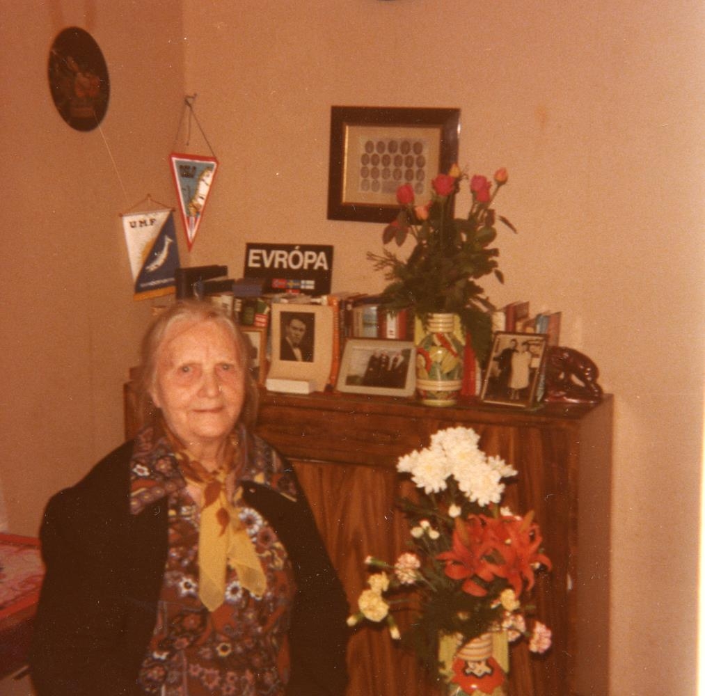 Kristín Snorradóttir á Laxfossi áttræð. Úr myndasafni Snorra Þorsteinssonar fyrrum fræðslustjóra frá Hvassafelli í Norðurárdal.