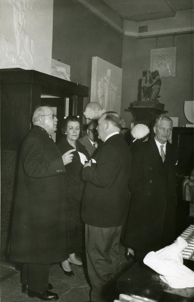 „Hörður Bjarnason húsameistari og bróðursonur Einars Jónssonar. Fyrir miðju. glittir í verkið Skuld, þar við hliðina Þú ert veginn, svo glíman.“ (STT 2016)