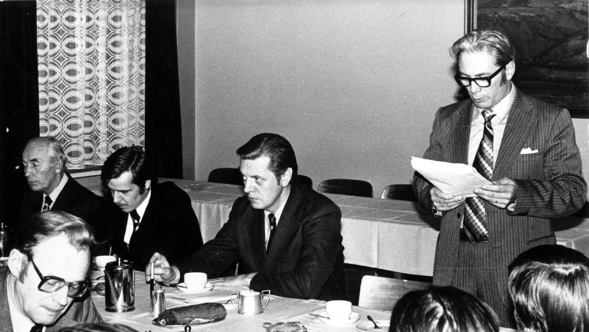 Sigurður Hannesson bæjarfulltrúi Sjálfstæðisflokksins ávarpar fundinn.