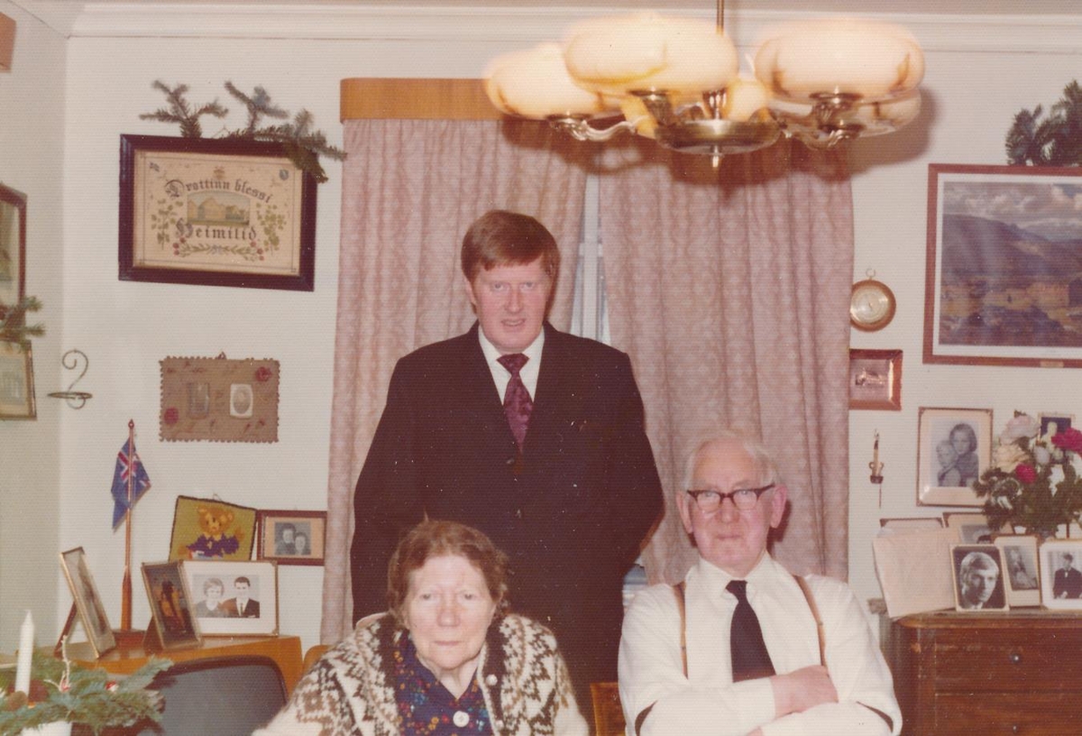 Jón Hermannsson ásamt hjónunum Sigurbjörgu Magnúsdóttur og Stefáni Ólafssyni skósmið.