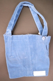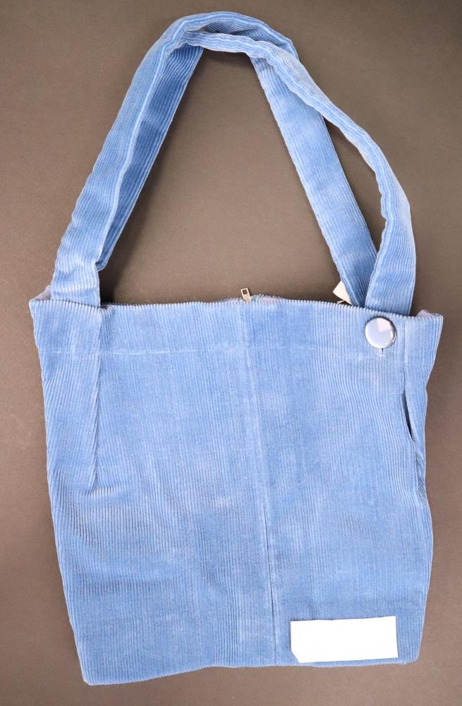 a) Stuttbuxur með böndum yfir axlir. Vélsaumur. Þær eru heilar að framan með rennilás á hlið. Tvö föll að framan og tveir sniðsaumar að aftan. Tvö handsaumuð hnappagöt í mitti að framan fyrir böndin.