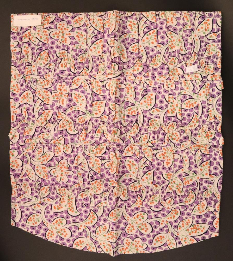 Poki á herðatré með mörgum vösum til að geyma í ýmsa muni. Vinna kennaranema í Handavinnudeild Kennaraskóla Íslands 1961-1963.