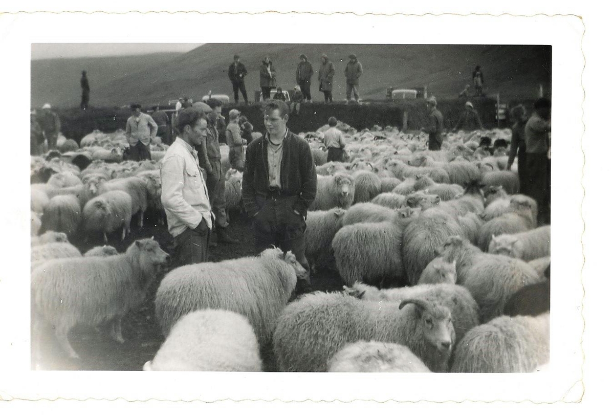 Jónatan Aðalsteinsson í Hlíð (til vinstri) ræðir við Pál Hjartarson á Undralandi.(seinna verkfræðing hjá Siglingamálastofnun)