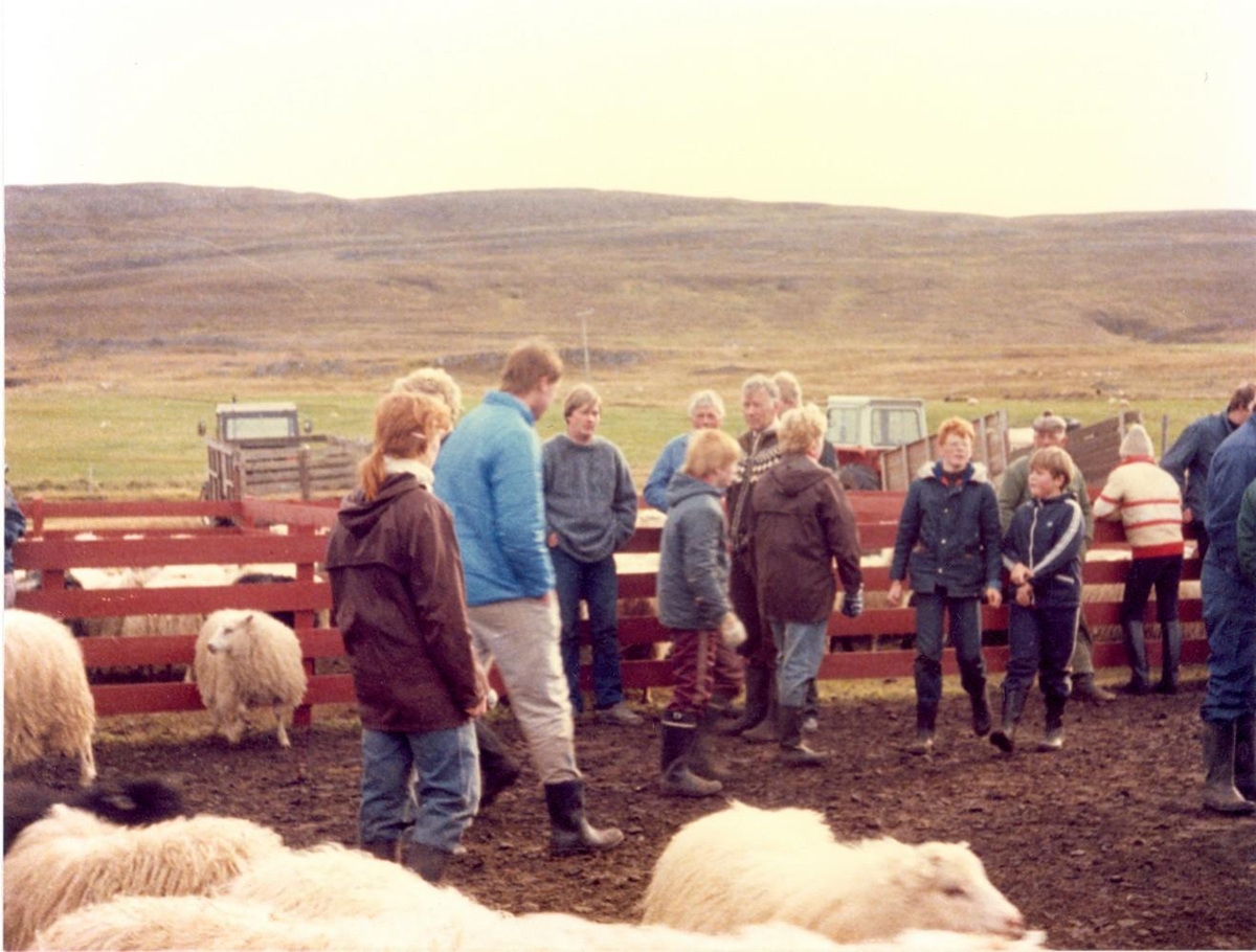 Réttað í Kirkjubólsrétt. Þekkja má Benedikt Grímsson og Grím Benediktsson.