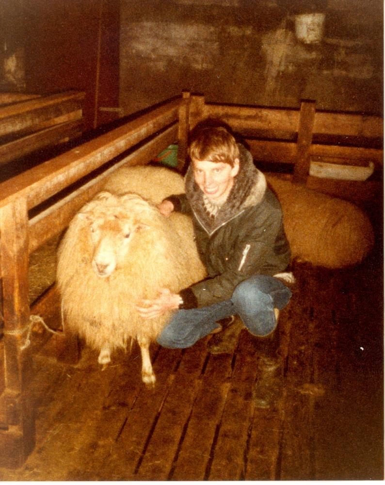 Guðbrandur Björnsson með kind í fjárhúsunum á Felli.