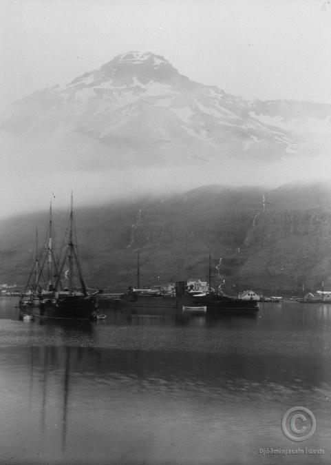 Seyðisfjörður - Kvöld við höfnina. Danska herskipið Heimdal (Heimdallur) á miðri mynd.