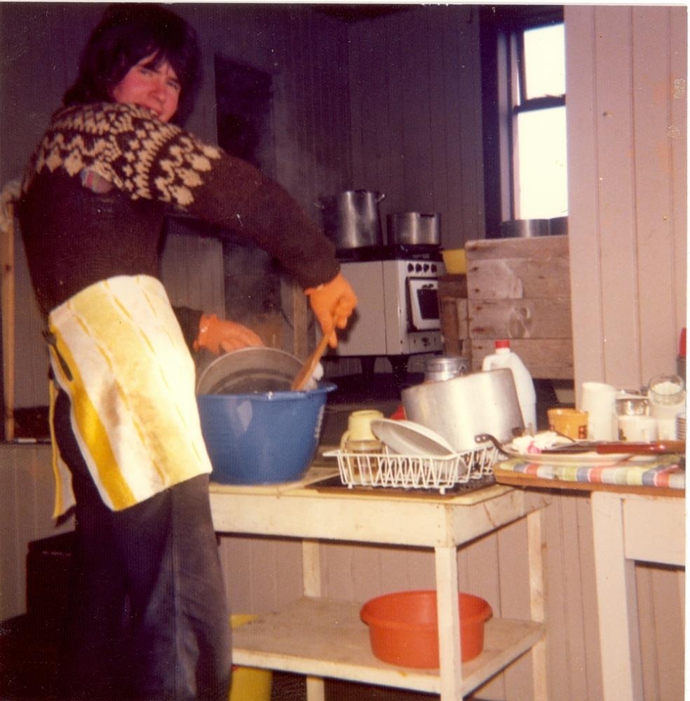 Valur Þórðarson vaskar upp í mötuneytinu á Eyri. Valur var ekki að vinna í sláturhúsinu.