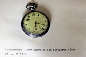 Karlmannsúr. Fermingagjöf frá foreldrum Haraldar Ólafssonar 23.4.1923