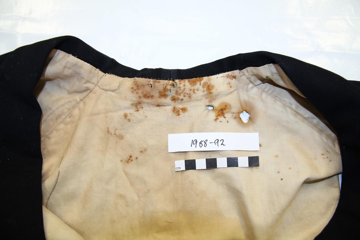 Svart vesti saumað úr klæði. Vestið átti Séra Jón Jónsson prófastur á Stafafelli.